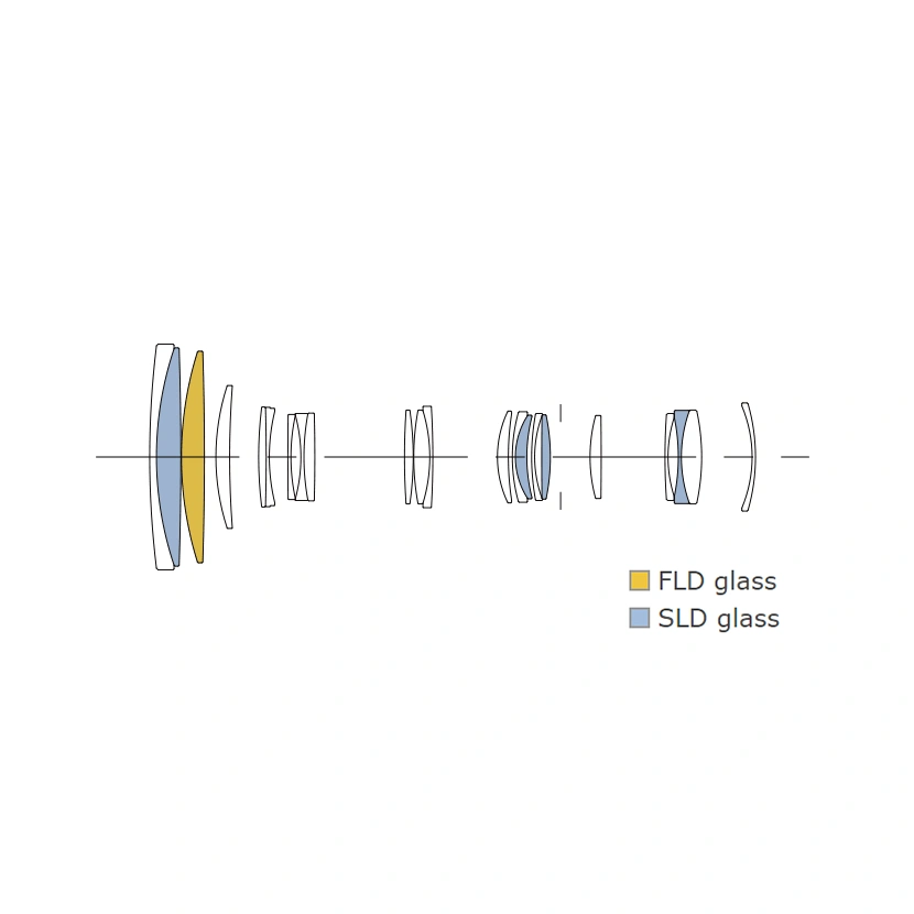 Konstrukce objektivu: 22 členů 16 skupin ?4 SLD, 1 FLD, 0 ASF?