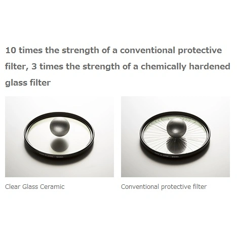 Keramické sklo je také mimořádně odolné vůči poškrábání, praskání a tvorbě tříštivých úlomků, které mohou dodatečně poškodit optiku. Specifické vlastnosti materiálu Clear Glass Ceramic umožňují snížit tloušťku skla filtru až o 50 % a redukovat váhu až o 30 % oproti ostatním řadám SIGMA PROTECTOR.