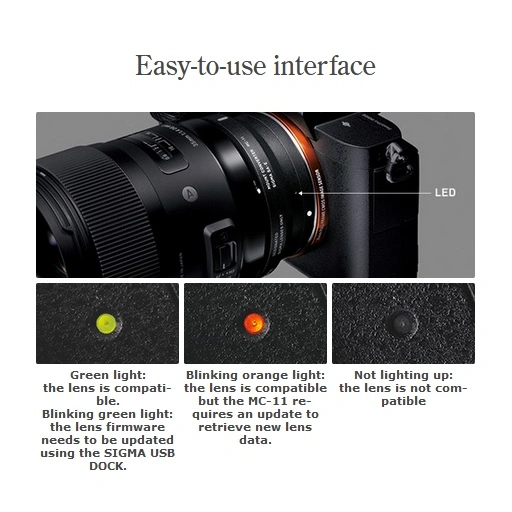 SIGMA MOUNT CONVERTER MC-11 je určený pro použití s fotoaparáty Sony E-mount (a7 series/NEX series/a5000/series a6000) a objektivy SIGMA SA s bajonetem pro SIGMA SA-E.